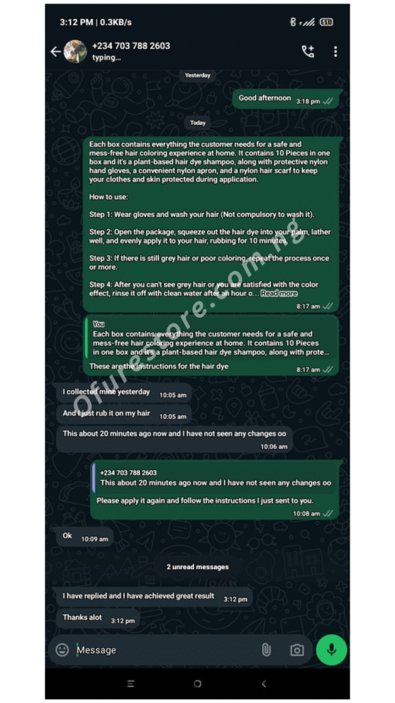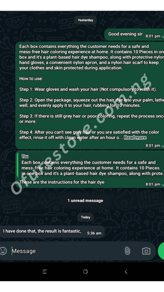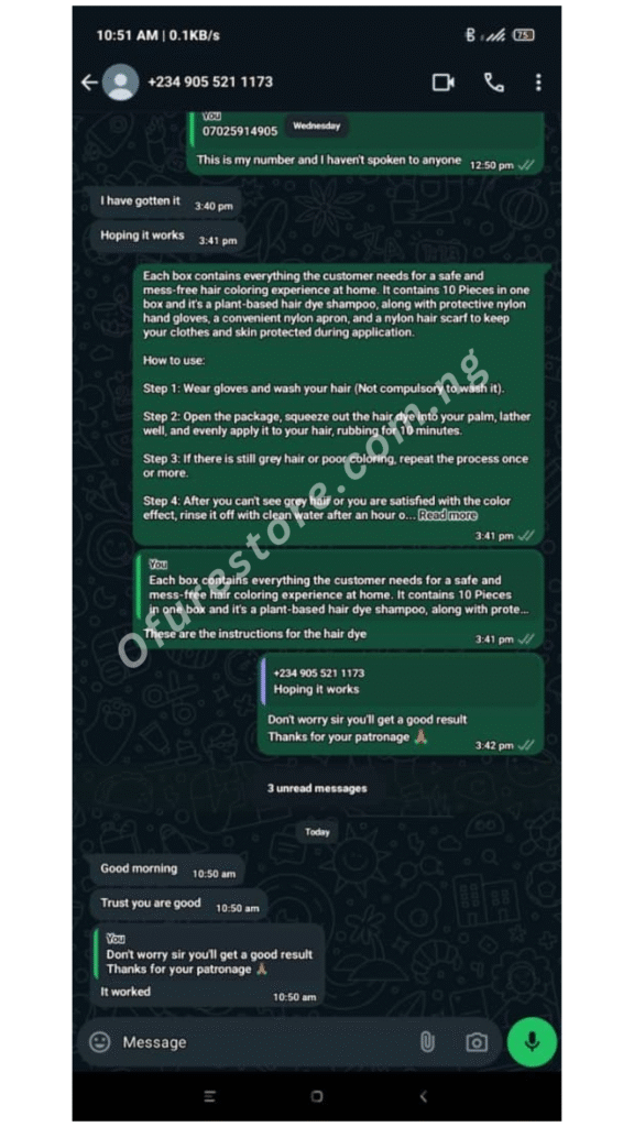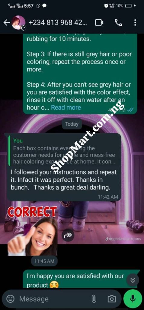 I decided to try out this 3 in 1 Korean Plant Hair Dye Shampoo to address my concerns about gray hair. To my surprise, the results were swift! I’ve falling in love with this product, and the transformation is amazing. The application is simple; just massage the dye onto your hair. What sets this apart is not just the quick results but also the longevity of the dye. Unlike other products I’ve tried over the past year, this one not only delivers better results but also ensures a lasting and vibrant hair color. – Victoria