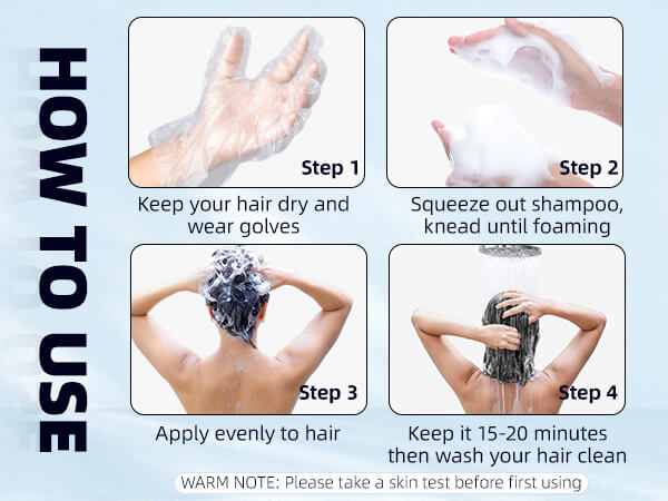 Step 1: Wear gloves, wash your hair (No need to wet it)