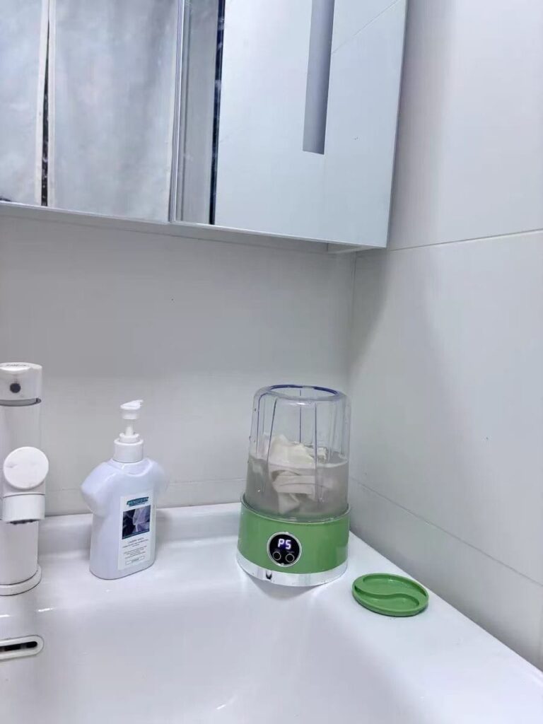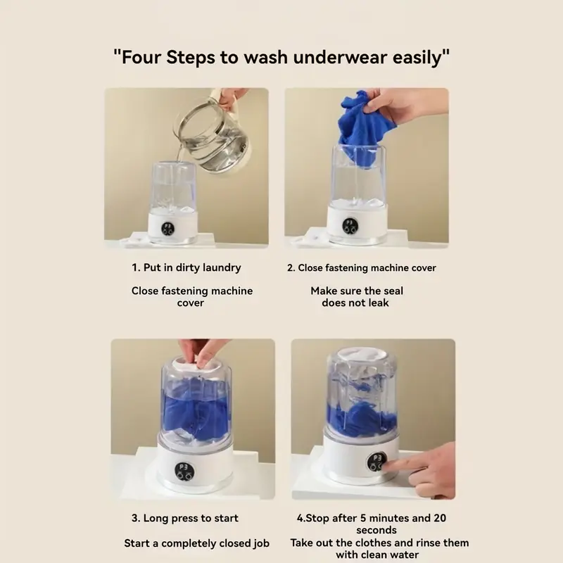 It’s a small but mighty washer that’s designed only for small clothes — underwear, socks, baby wear, delicate fabrics. It uses advanced ultrasonic cleaning to go deep into the fibers, blasting away stains like sweat, blood, or baby food spills… all without damaging the fabric.