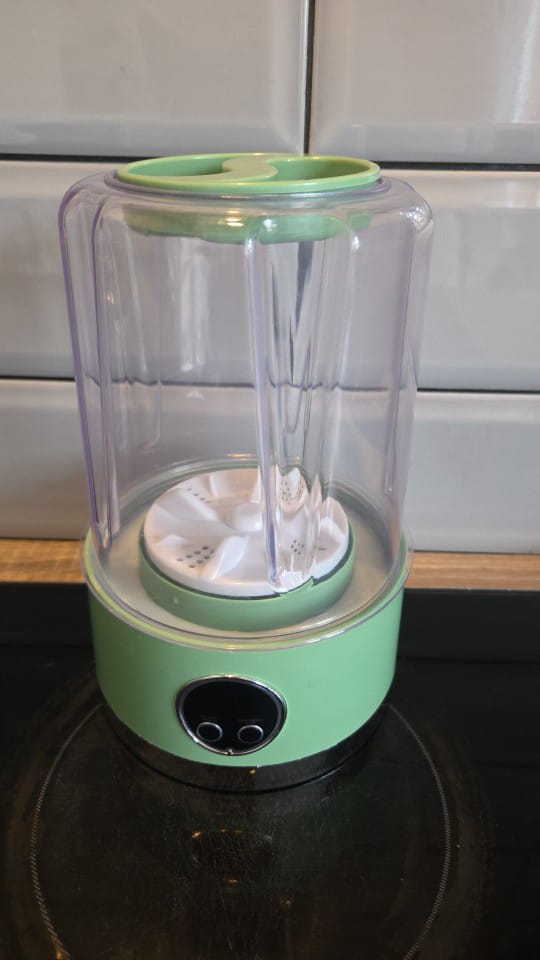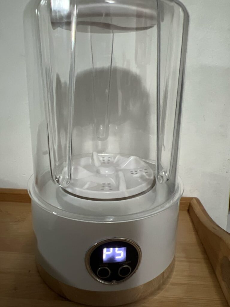 Living in a small apartment, I don’t have space for a big washing machine. This mini one is perfect for me. It uses very little water and electricity